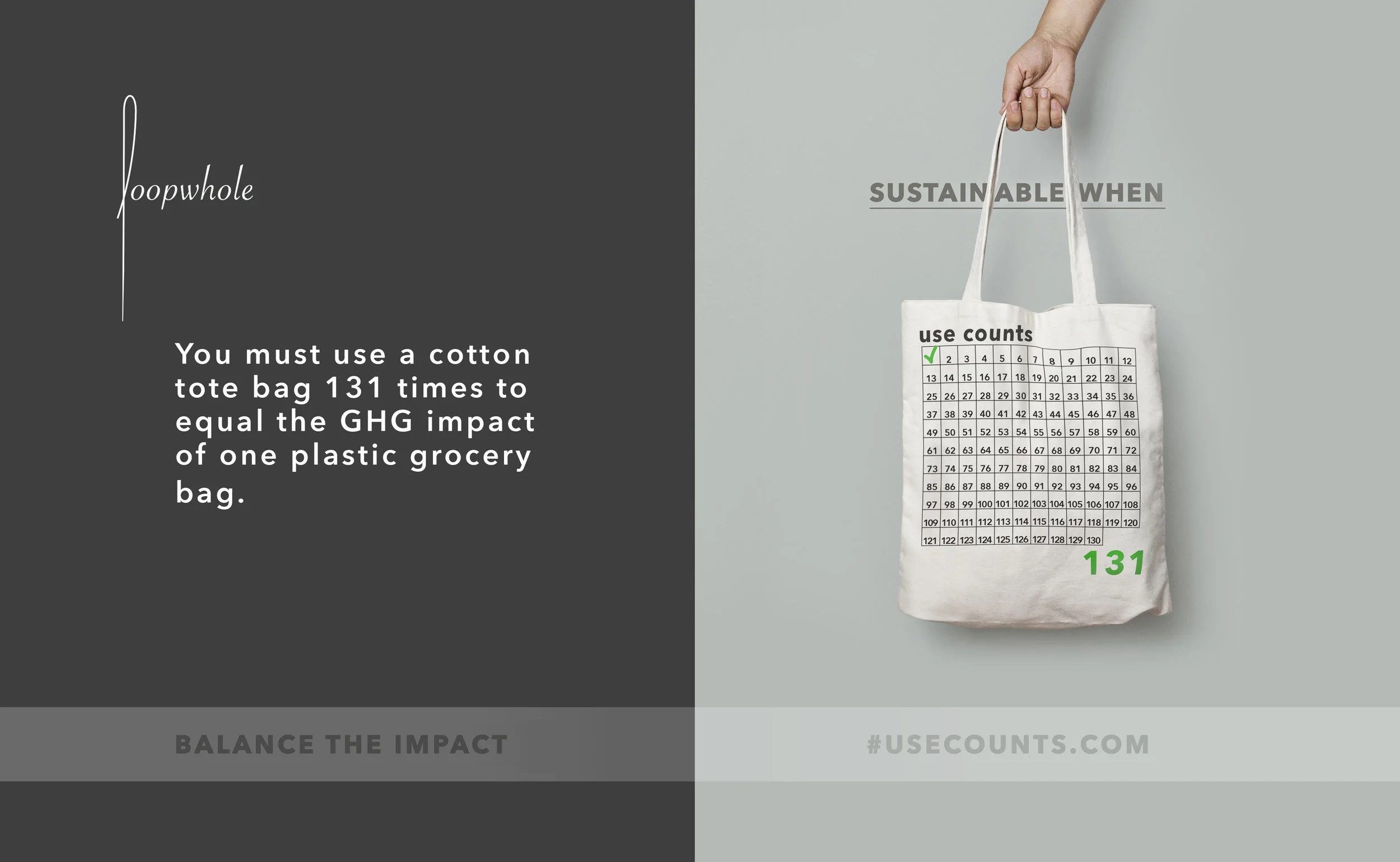 The useCounts project is built upon the quantified, scientific research found in Life Cycle Assessments (LCA) from the Environment Agency, Cal Recycle, and the Clemson University– designed to spread the evidence of a products environmental sustainability.